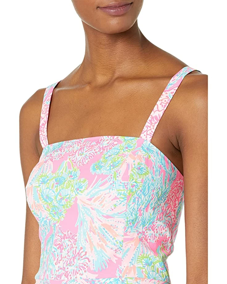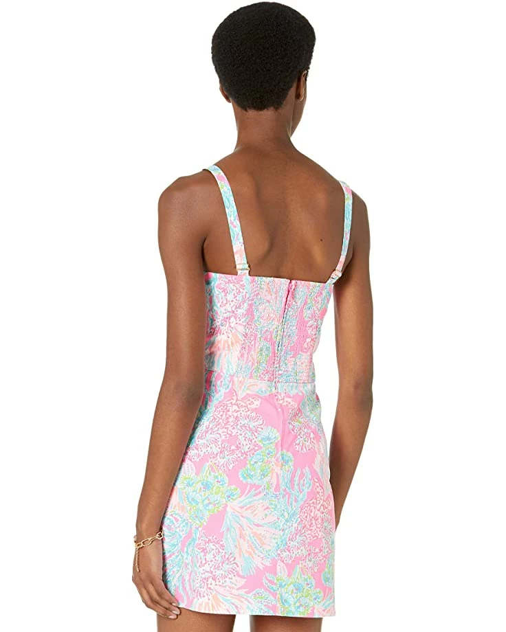 - The Lilly Pulitzerยฎ Lawless Romper is ready for a day in the sun with its square neckline, adjustable shoulder straps, and smocked back with zipper closure.