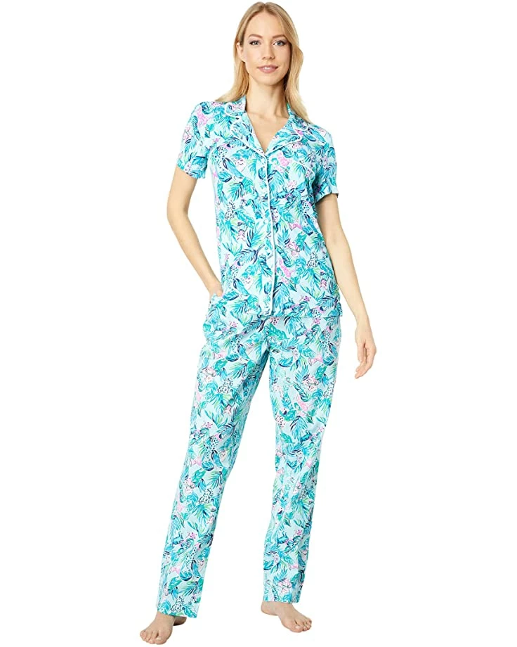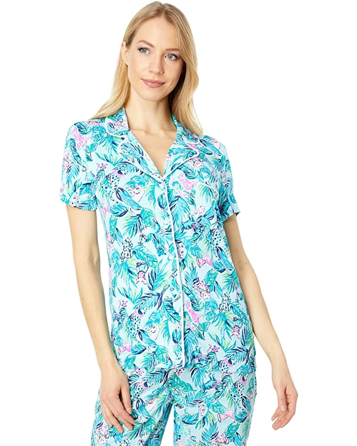 - Add a fun style to your bedtime comfort with the Lilly Pulitzer® PJ Knit Short Sleeve Button-Up Top, featuring bright and eye-popping patterns.