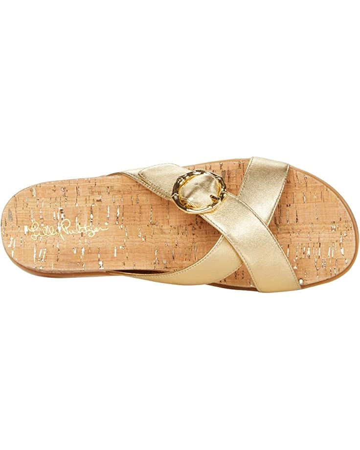 - The Lilly Pulitzerยฎ Bayshore Sandal will refresh your summery-chic style with a metallic finish, open toe, and crisscrossing vamp straps with an adjustable buckle detail at the instep.