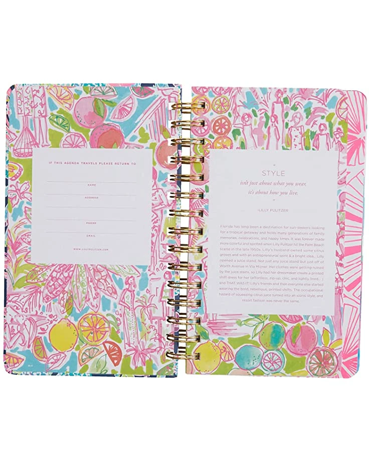 - Track your plans in style with the Lilly Pulitzer® 17 Month Medium Agenda featuring a custom print with monthly and weekly pages.