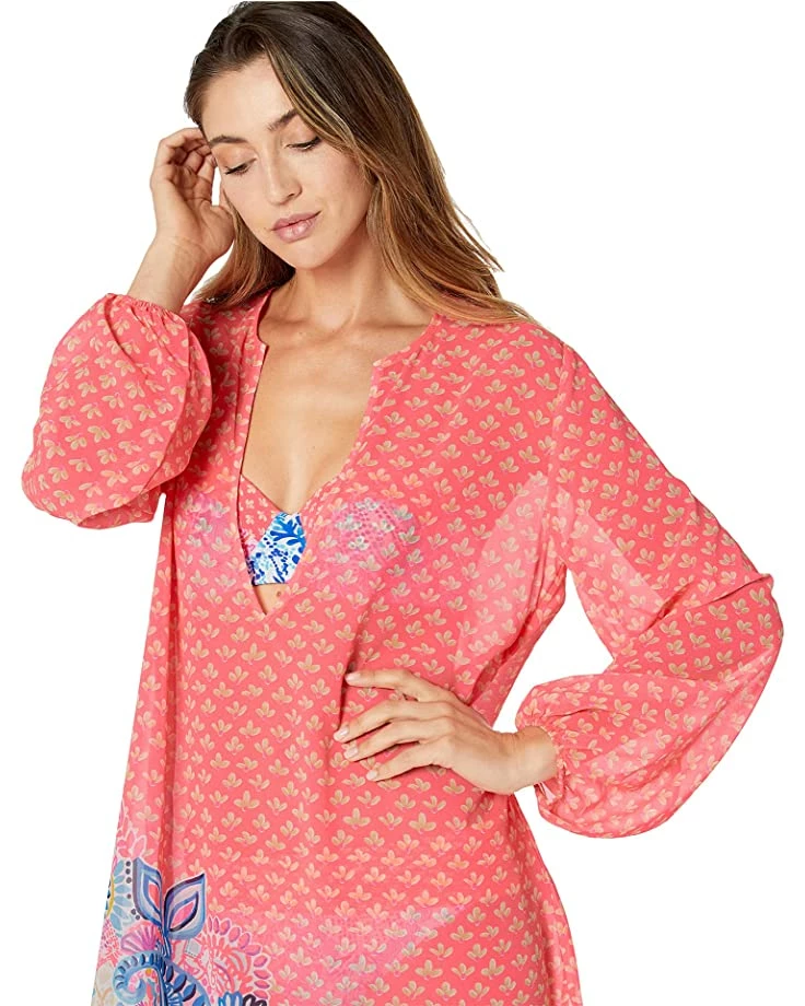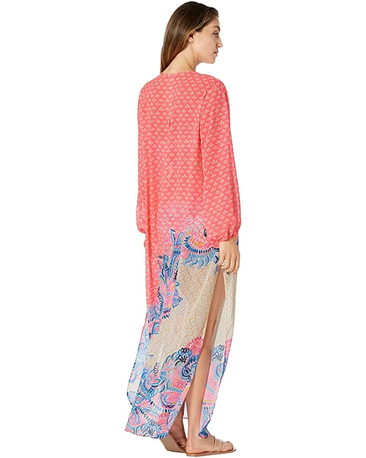 - Kick your feet up and relax with your favorite drink in the Lilly Pulitzerยฎ Frey Cover-Up featuring a classic long sleeved cover up falling towards the ankles with slits for added style and free range of movement just incase you’d like to tan boasting all over paisley inspired pattern.
