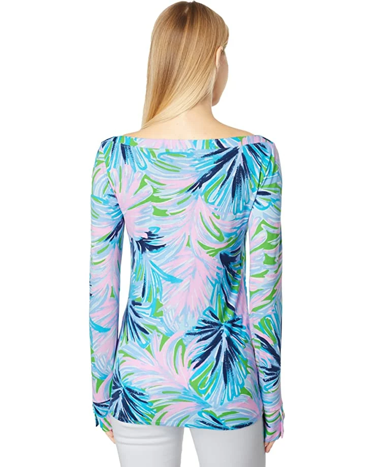 - The Lilly Pulitzerยฎ Aleah Top makes your sunny days extra bright and fun! This fitted top is crafted in a printed jersey fabrication, and designed with a boat neckline and button cuffs.