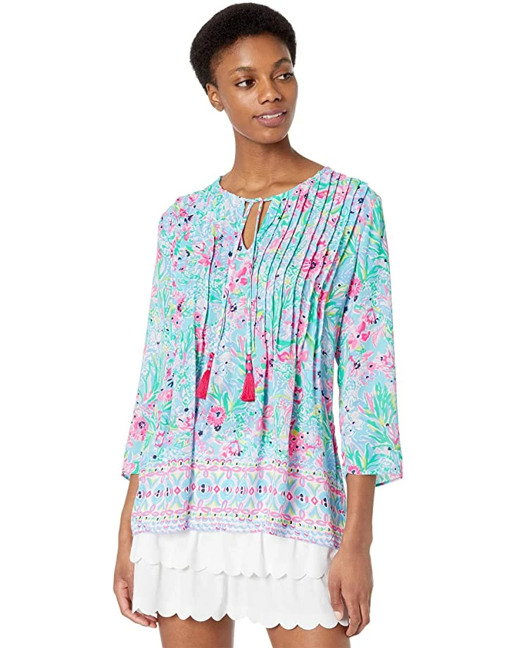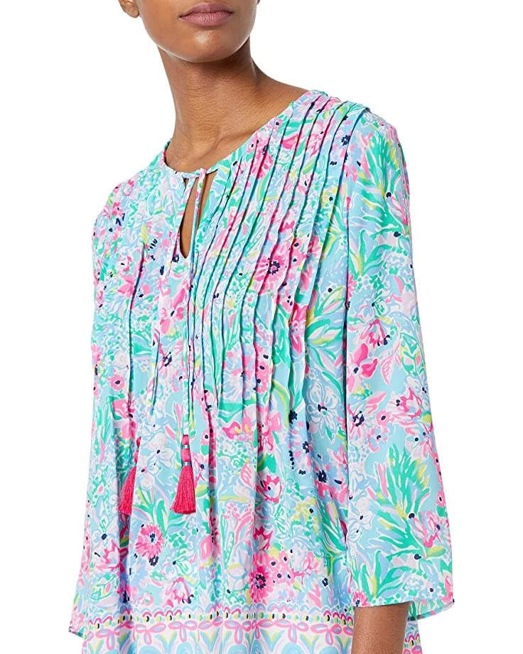 - The Lilly Pulitzer® Marilina Tunic is sure to become your new favorite! This top features a gorgeous print, and is detailed with a notched neckline, a triple-tier tassel drawcord, and pintucks at the front and back.