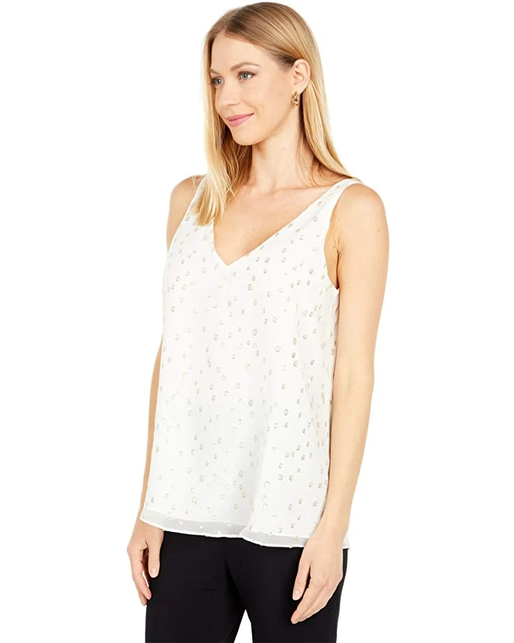 - Double-layer tank features an allover polka-dot pattern.