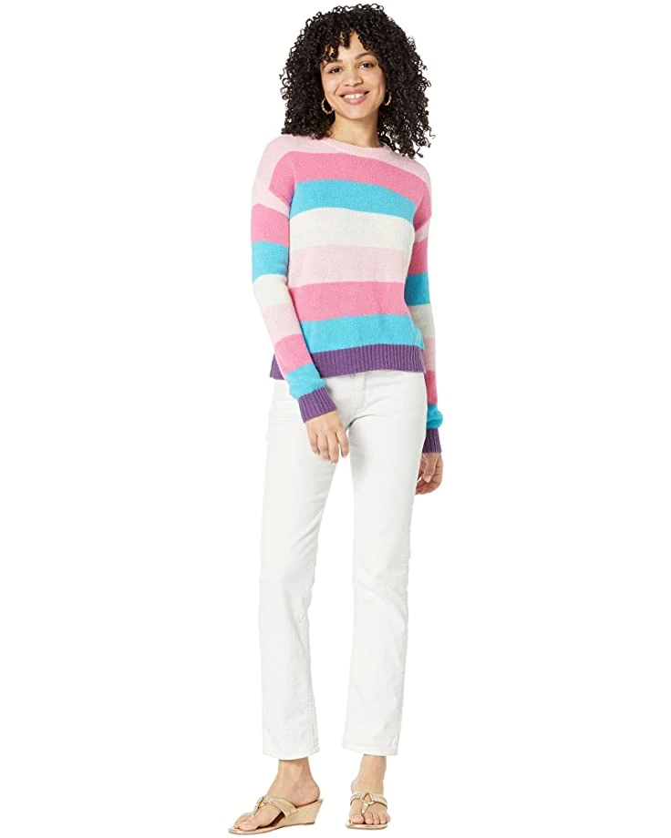 - Crafted in a super-soft and fluffy blended fabric and designed with beautifully colored stripes all over, the Lilly Pulitzerยฎ Amala Sweater is sure to become your seasonal favorite!