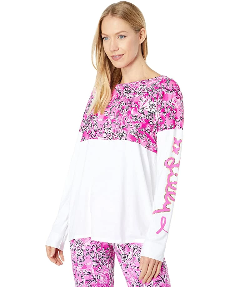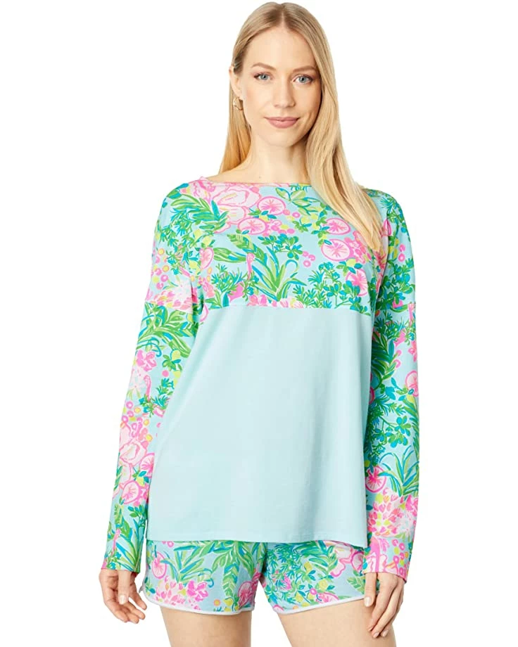 - The Lilly Pulitzerยฎ Finn Top features a color-blocked design and custom graphics for a cute, casual look.