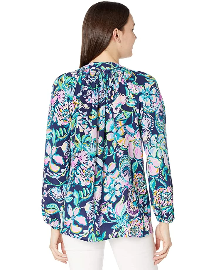 - Get ready for a style epiphany in the the Lilly Pulitzer® Elsa Top featuring a classic long sleeve henley style top with four button placket at center boasting all over floral pattern.
