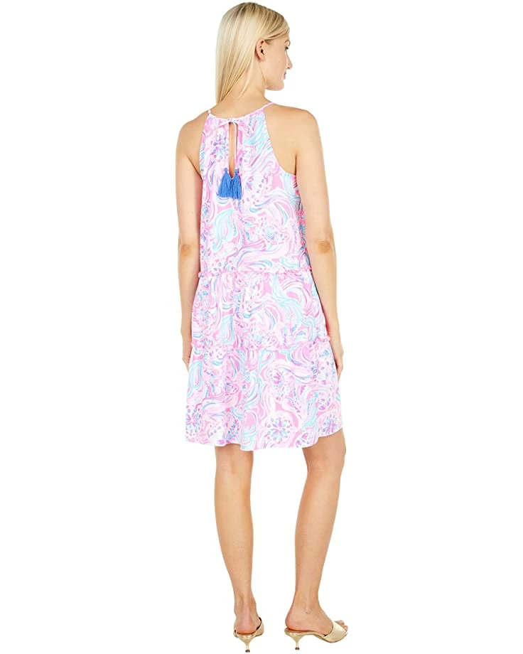 - Sway your way into the weekend with this light and breezy Lilly Pulitzerยฎ Evalyn Dress. This mini-length dress has a round neckline and fabric self-ties, crafted in a luxurious fabrication.