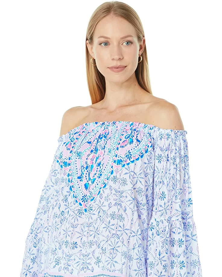- The Lilly Pulitzerยฎ Nevie Top is a beautiful, lightweight, off-the-shoulder design featuring an all-over floral print with a flowy silhouette.